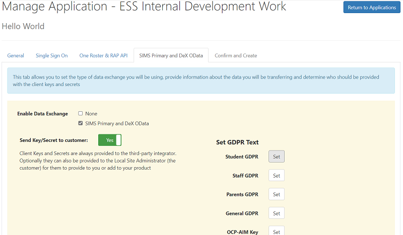 This page is within SIMS ID but is not currently of use to technical integrators.