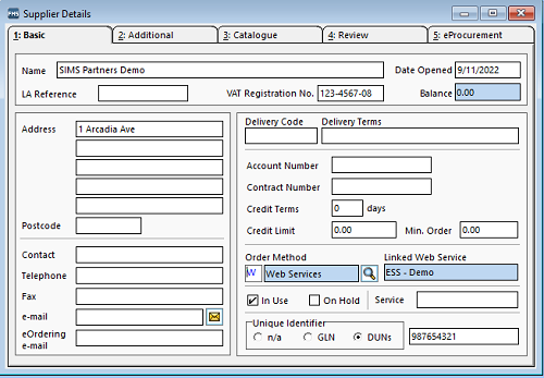 Once the supplier exists, the eproc setup screen can then add the supplier.